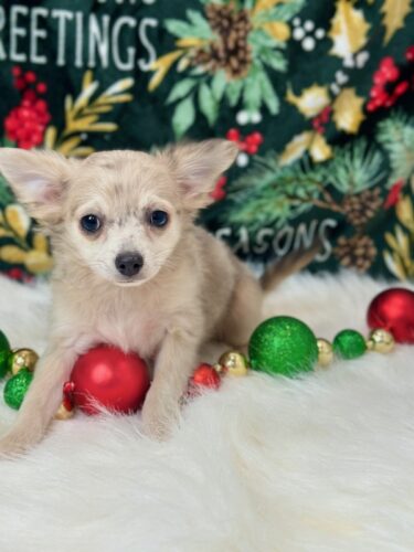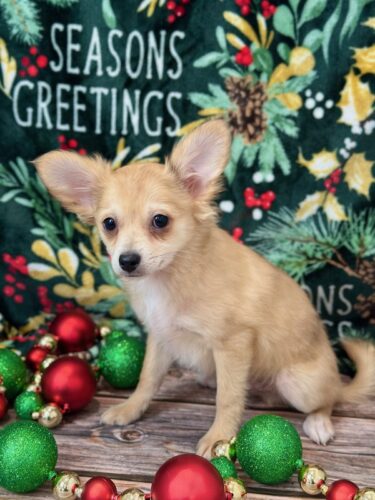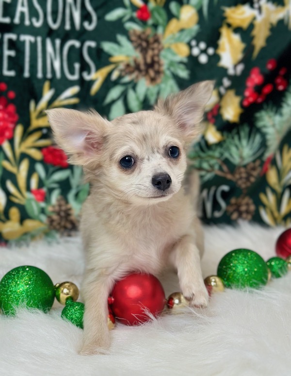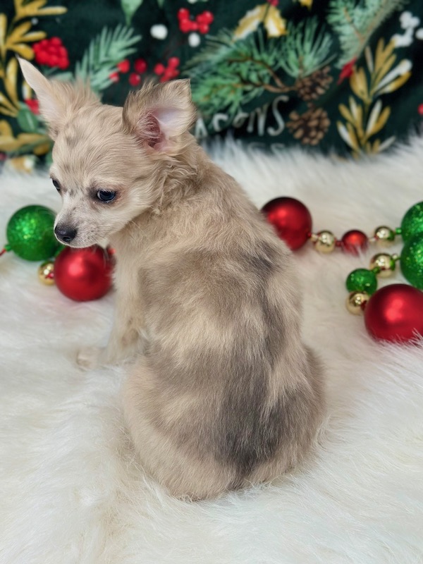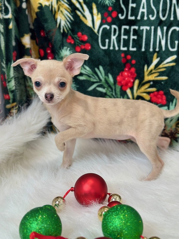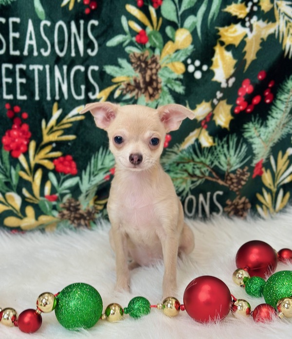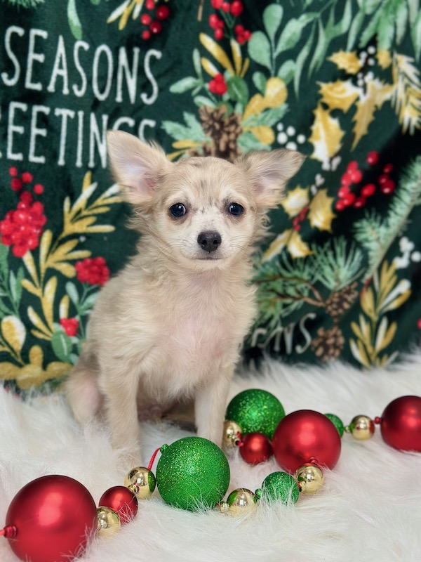 Meet Rucker, a handsome male Chihuahua puppy with a big heart and a loving personality. Rucker is AKC Registered, microchipped, vet checked, and current on all vaccinations, so he is healthy and ready for his new home. He is a sweet, affectionate puppy who would love nothing more than to spend Christma cuddling and bonding with his new family. Pickup is welcome in Memphis, Missouri, or delivery can be arranged for your convenience. Rucker is ready to bring joy, love, and holiday cheer to his forever home.