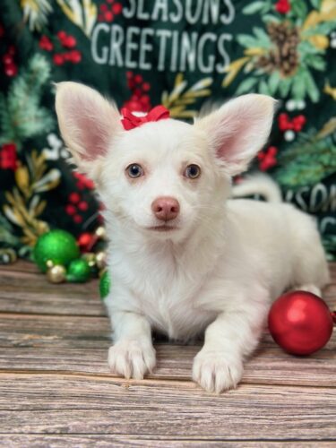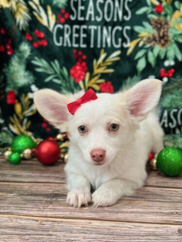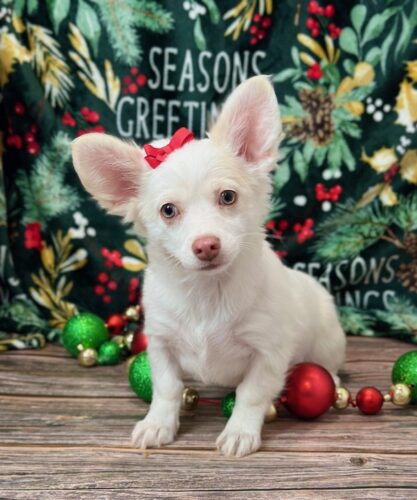 Meet Snowflake, a beautiful Chihuahua puppy with a stunning bright white coat and a very affectionate personality. Snowflake is AKC registered, microchipped, vet checked, and current on all vaccinations, so she is healthy and ready for her forever home. She loves attention, cuddles, and being close to her people, making her a wonderful companion. Pickup is available in Memphis, Missouri, and delivery can be arranged for your convenience. Snowflake is ready to bring love, joy, and a little extra sparkle into her new family’s life.